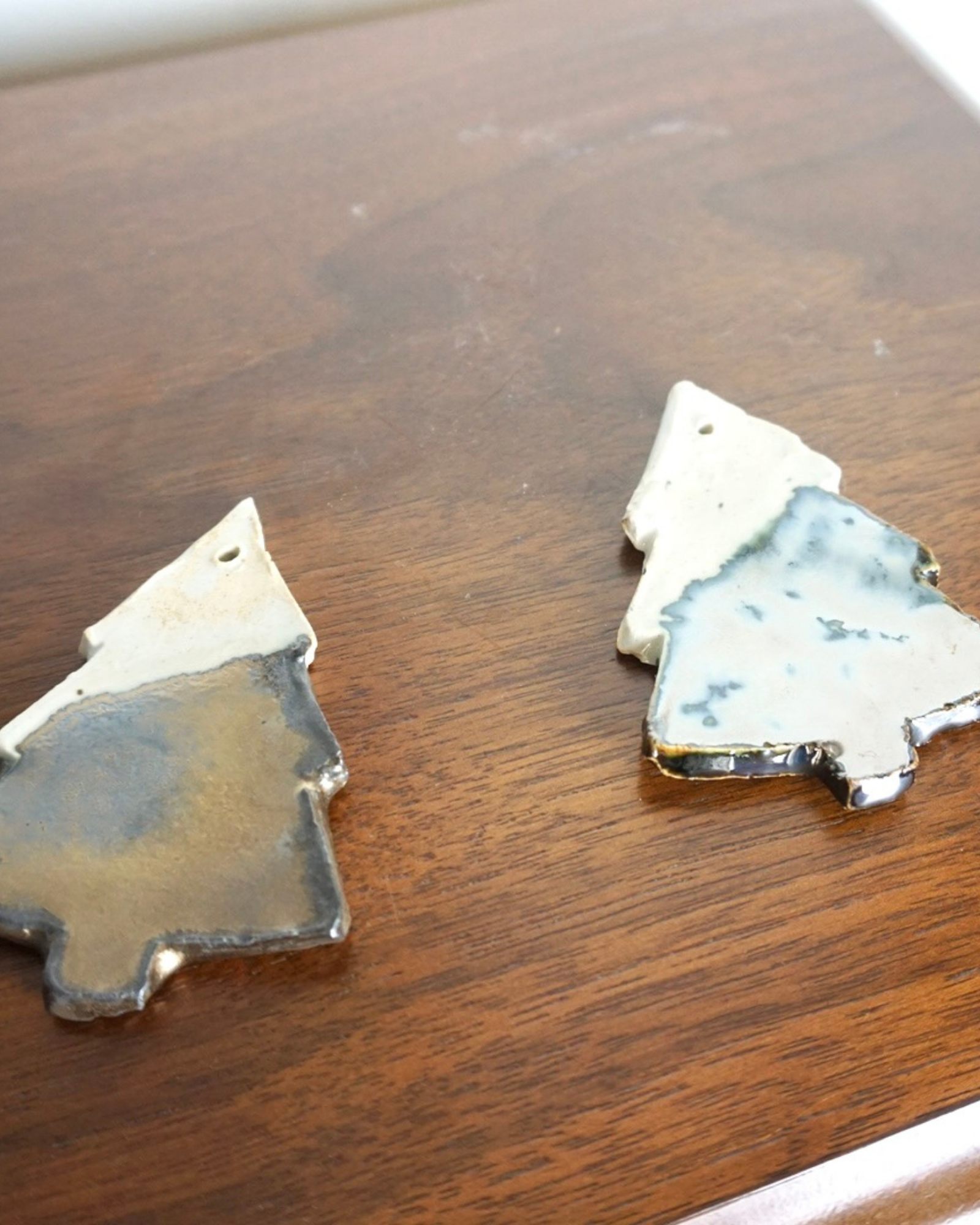 Elevate your holiday décor with these charming ceramic ornaments from Oui Carole. Choose between a festive tree adorned in shimmering silver or warm gold metallic glaze, Each 3-inch piece features our signature logo on the back, with glazed detailing on the front for a polished finish and raftan wooden tie to hang. Ideal as a stocking stuffer, gift tag, or treasured keepsake for your tree.