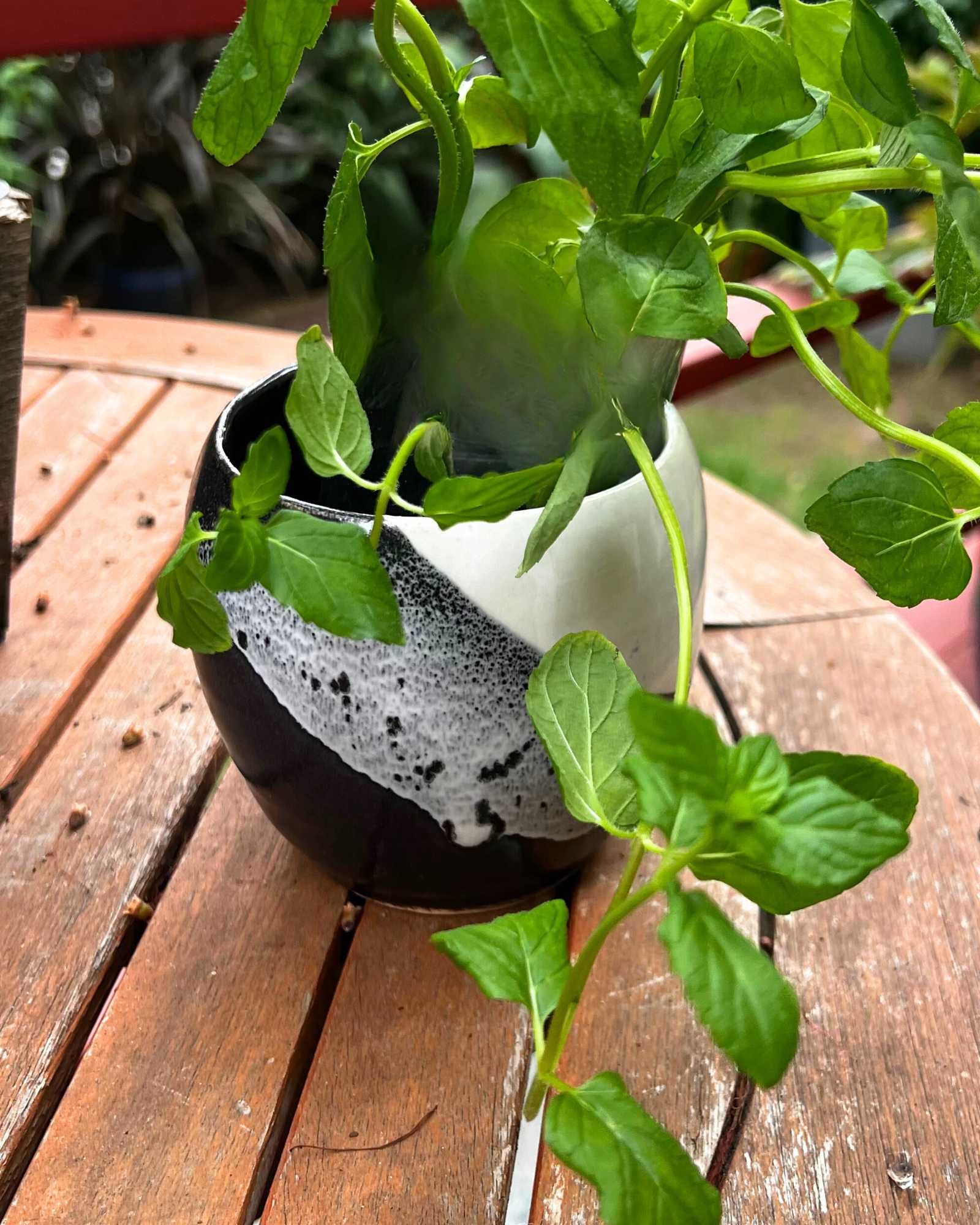 Elevate your botanical display with this artisanal planter, finished in a captivating black and white glaze inspired by the moon. Handcrafted to celebrate natural variation, each piece is uniquely textured and sized around 6 x 5 inches. The solid base design makes it ideal for succulents and drought-tolerant plants, eliminating the need for drainage concerns. A refined addition to any shelf, windowsill, or garden space.
