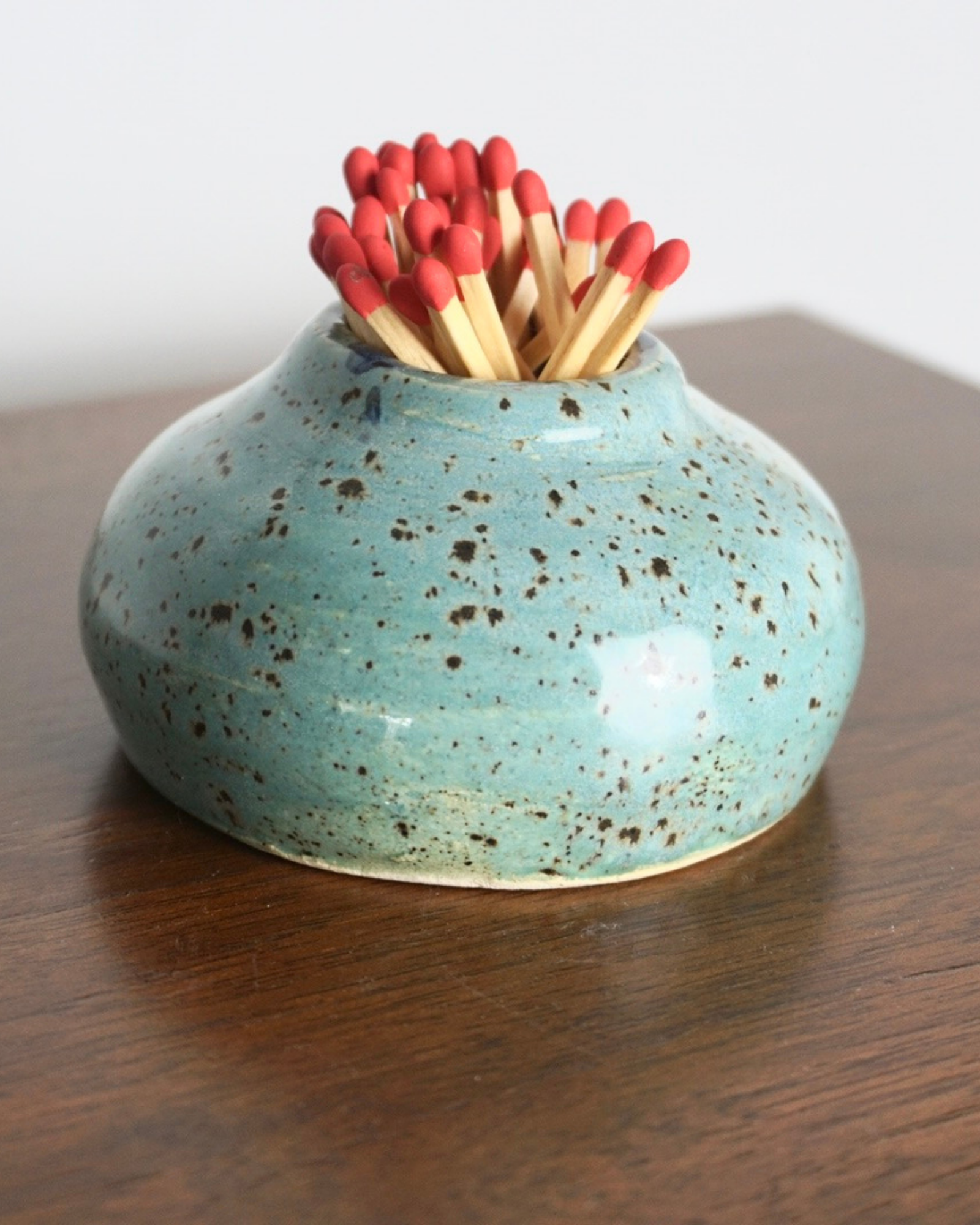Make lighting up your candle and event with this hand crafted matchstick holder. Option to hold your in palo santo or incense stick in this modern and functional piece. Comes with match striker on bottom.