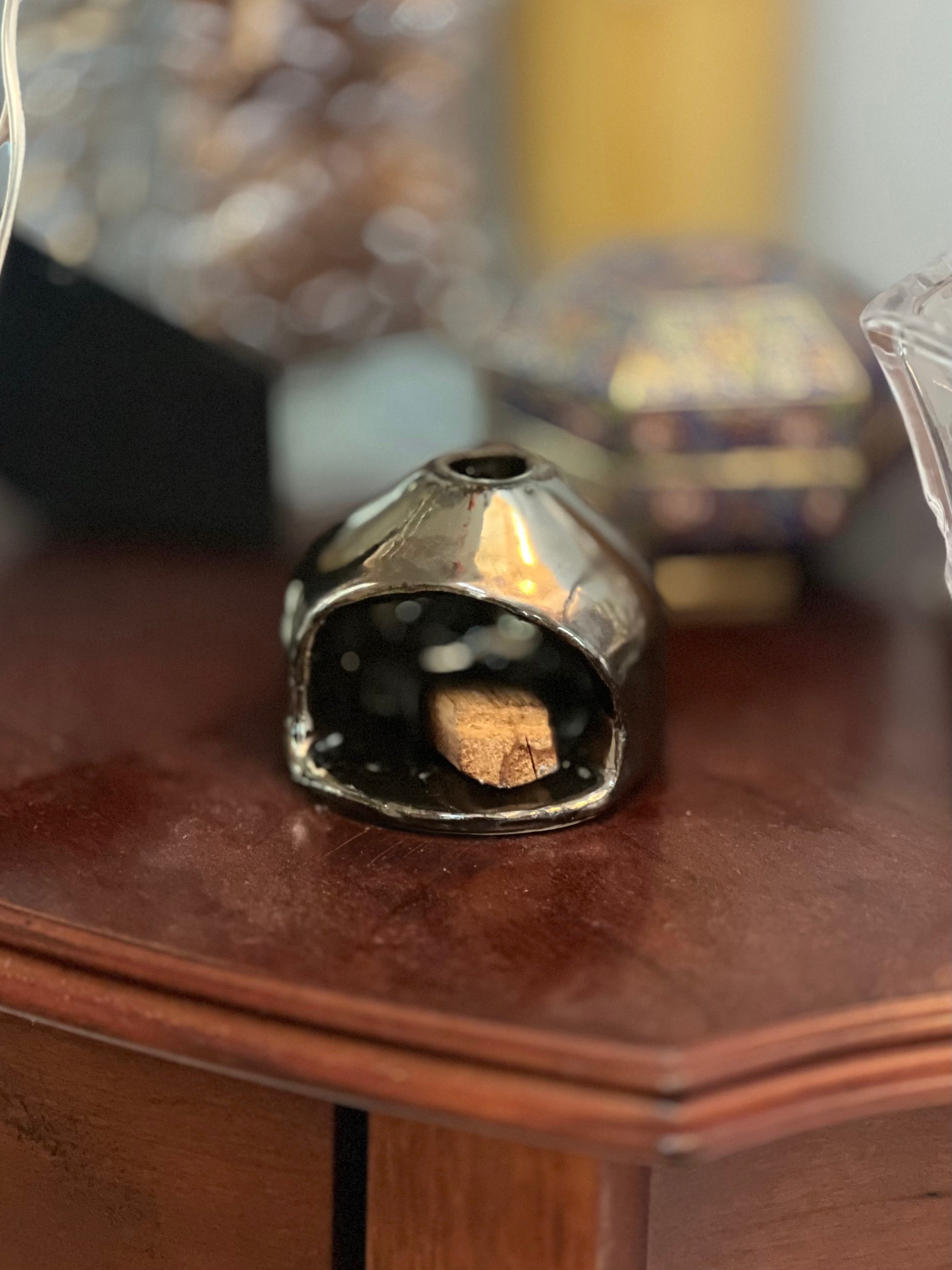 Individually hand thrown the OUI Palo Santo Holder is a gorgeous standout ceramic burner for your home. Its polished surface and integrated ash-collecting dish provide a safe and elegant experience for burning palo santo sticks, sage bundles, or incense cones. Each piece is uniquely crafted with subtle variations, embodying the quiet magic of darkness before dawn. A refined addition to your daily mindfulness and ritual practices. Pre-order now and ships November 28th
